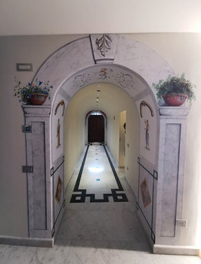 I piani superiori sono collegati da una scala in marmo e da un ascensore con finiture specchiate, pensato per garantire comodità e continuità stilistica tra i vari livelli.